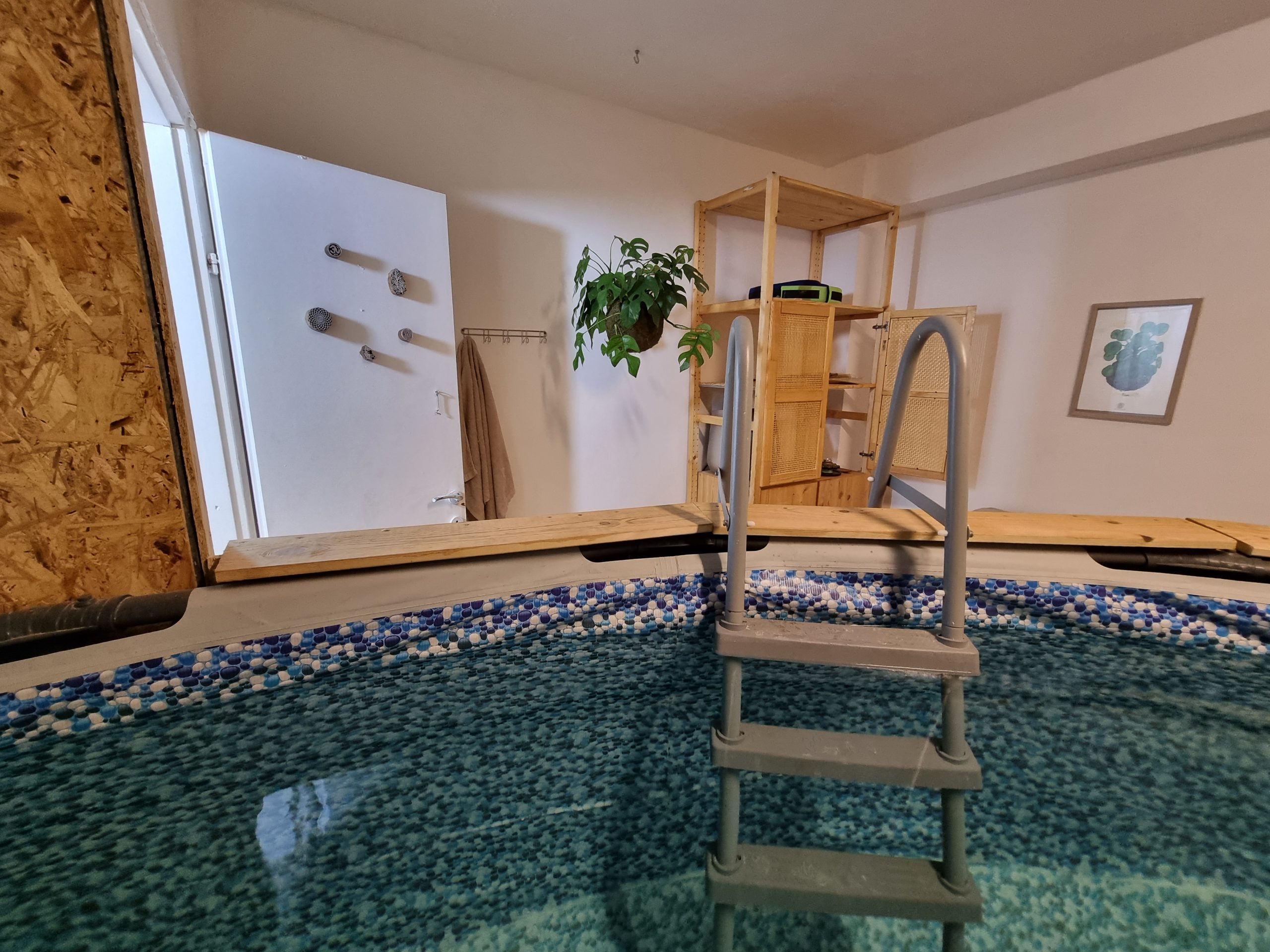 הבריכה בטמפרטורה קבועה של 35.4 מעלות